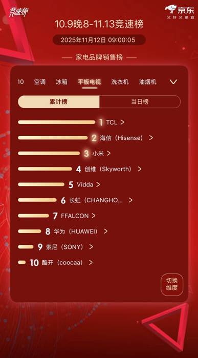 隨著雙11正式收官,家電市場(chǎng)傳來(lái)捷報(bào)。TCL電視雙十一全周期霸榜銷(xiāo)量第一,展現(xiàn)出強(qiáng)大的品牌勢(shì)能,再次實(shí)現(xiàn)爆發(fā)增長(zhǎng)。 這一成績(jī)背后,是TCL對(duì)多元市場(chǎng)需求的敏銳洞察,以及在技術(shù)與制造端的長(zhǎng)期積累。憑借“面板―模組―