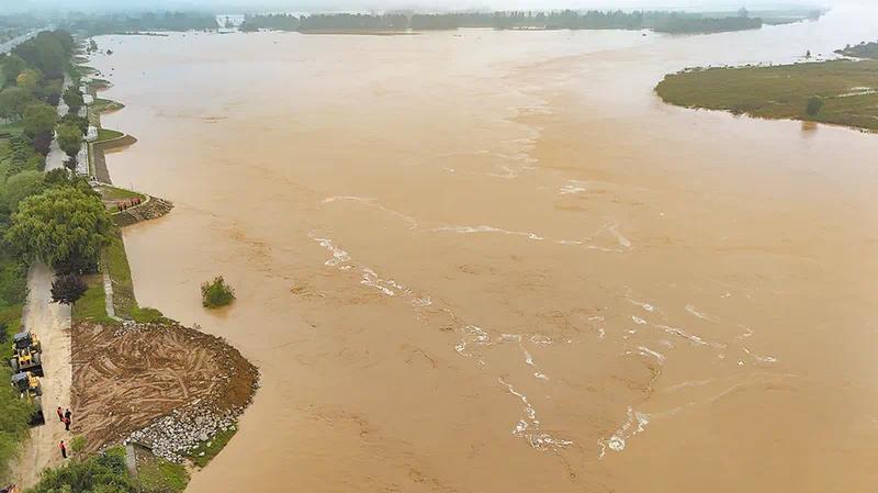 航拍的臨渭區向陽辦樹園控導工程渭河流域 原標題:我市全力應對渭河1號洪水 受上游來水及強降雨疊加影響,渭河形成2025年1號洪水,10月13日18時洪峰進入我市境內,14日0時,華縣水文站出現4430立方米每秒洪峰流量,14