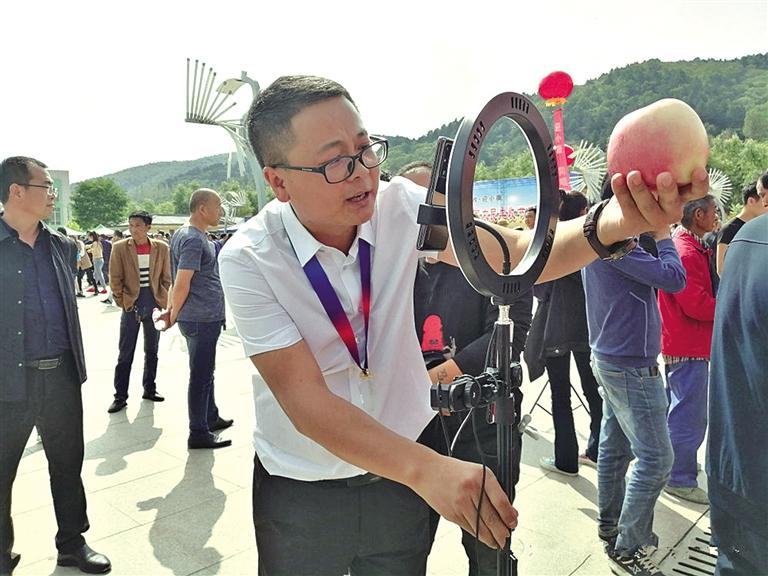9月23日,富縣2025年農民豐收節活動現場,工作人員直播帶貨,助力農產品銷售(資料照片)。 本報通訊員 夏蓓蓓攝