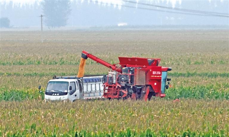 近期,大荔縣58.91萬畝玉米進入收獲期。圖為9月26日,趙渡鎮新安村村民在收獲玉米。 本報通訊員 李世居攝