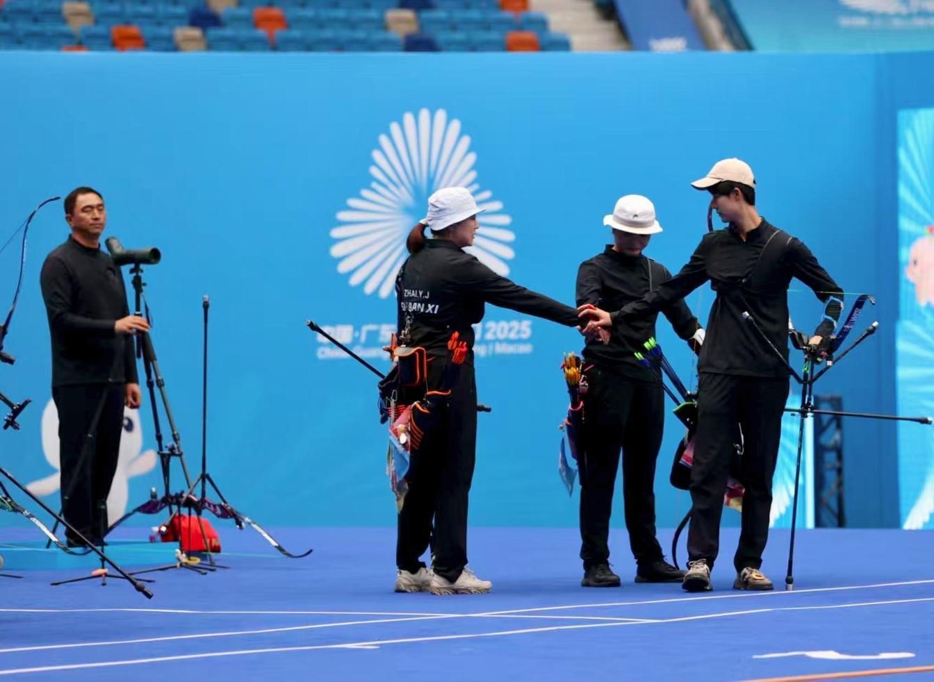 第十五屆全國運動會女子反曲弓團體賽11月19日在深圳市體育中心體育場上演多場精彩對決。由西安籍選手馬毅靜、茹清寧與寶雞名將翟悅君組成的陜西隊,最終在銅牌爭奪戰中憑借附加賽的穩定發揮擊敗福建隊,斬獲該項目銅牌。這是陜西女子射箭隊自1983年組隊以來,在全運會團體賽事中取得的歷史最佳戰績,山東隊、河南隊分獲金銀牌。