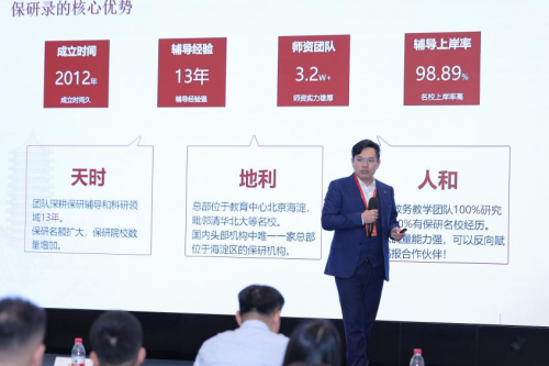 “怎么上大學比上什么大學更重要。”鄭玉超強調,“通過保研錄的合作,我們可以幫助家長一次見面就為孩子錨定大學四年每個階段的核心目標!”他介紹了保研錄提供的全方位支持,包括社群運營、宣傳物料設計、直播支持、全流程服務運營以及雙向合作推薦等。
