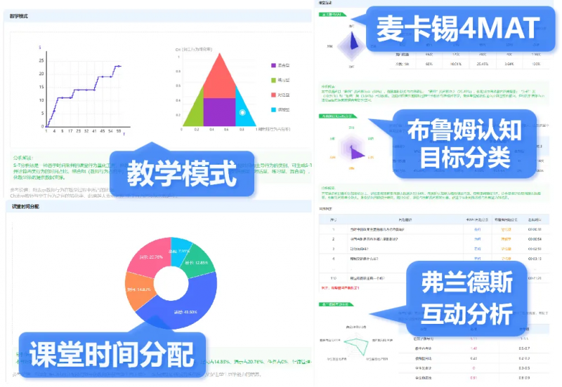 課堂互動(dòng)分析:引入麥卡錫4MAT、布魯姆認(rèn)知目標(biāo)分類、弗蘭德斯互動(dòng)分析等專業(yè)教育模型,關(guān)注教師提問方式、教學(xué)方式、引導(dǎo)學(xué)生思考模式