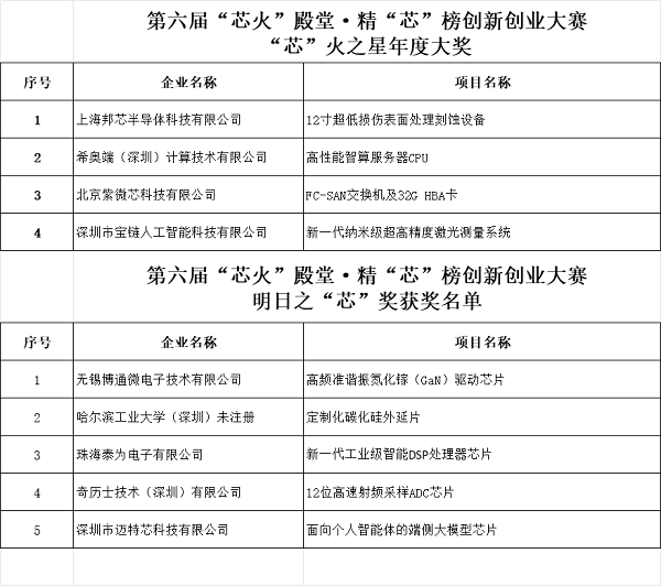 本文鏈接:http://m.rrqrq.com/showinfo-20-187364-0.html第六屆 “芯火” 殿堂?精 “芯” 榜創新創業大賽獲獎名單正式公布
