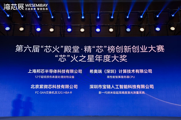 歷經決賽評審及后續復核,2025 年 10 月 15 日,第六屆 “芯火” 殿堂?精 “芯” 榜創新創業大賽(以下簡稱 “芯火大賽”)頒獎盛典在 2025 年灣芯展現場隆重舉辦。展會還為獲獎項目特別設立展區,為產業鏈資源對接與技術成果轉化奠定基礎。