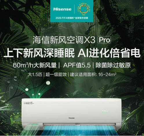 靜音與送風(fēng)技術(shù)上,海信X3Pro的16分貝低噪音運行技術(shù)比鐘表滴答聲還輕,曲面波浪與仿生蝶翼雙導(dǎo)風(fēng)板技術(shù)則把氣流揉成“拂面風(fēng)”,完全不打斷睡眠節(jié)奏。