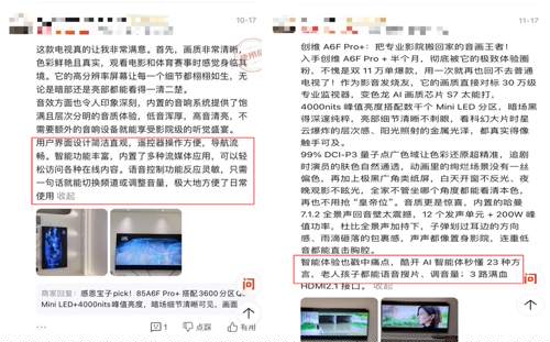 一位購(gòu)買85寸機(jī)型的用戶感嘆:“音效方面令人印象深刻,低音渾厚,高音清亮,享受影院級(jí)的聽覺盛宴。”另一位用戶同樣表示:“音響效果很棒,像在電影院看電影一樣”。真實(shí)用戶的反饋,印證了卓越音質(zhì)在整體影音體驗(yàn)中不可或缺的價(jià)值。