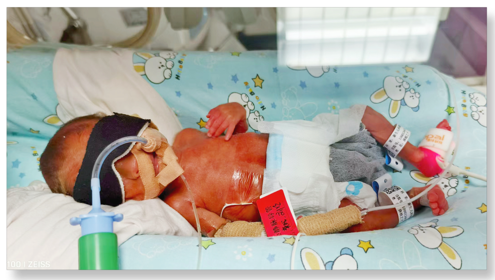 88天前,這個提前近16周“報到”的小生命,胎齡僅24 +4周,體重僅有760克,身體如同成人手掌般大小,心跳微弱得仿佛隨時會停止。作為醫學定義中的“超早產兒”(胎齡24 -28周),小添添全身器官發育極不成熟,皮膚呈透明膠凍狀,呼吸淺弱得幾乎難以察覺。他面臨著呼吸衰竭、感染風險、營養缺失、神經系統發育障礙等重重難關,每一道關卡都如懸崖峭壁,橫亙在他面前。這樣的寶寶,被業內視為新生兒救治“金字塔尖的挑戰”。