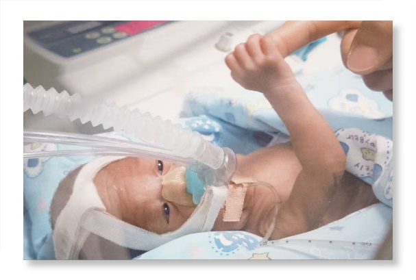 “孩子的呼吸就是生命線,必須和死神搶時間!”該院新生兒重癥監護室迅速啟動超早產兒救治應急預案,集結資深新生兒專家和優質護理團隊,組建專業救治小組,一場與時間賽跑的生命保衛戰就此打響。肺部發育極度不成熟是小添添面臨的首個致命難關。